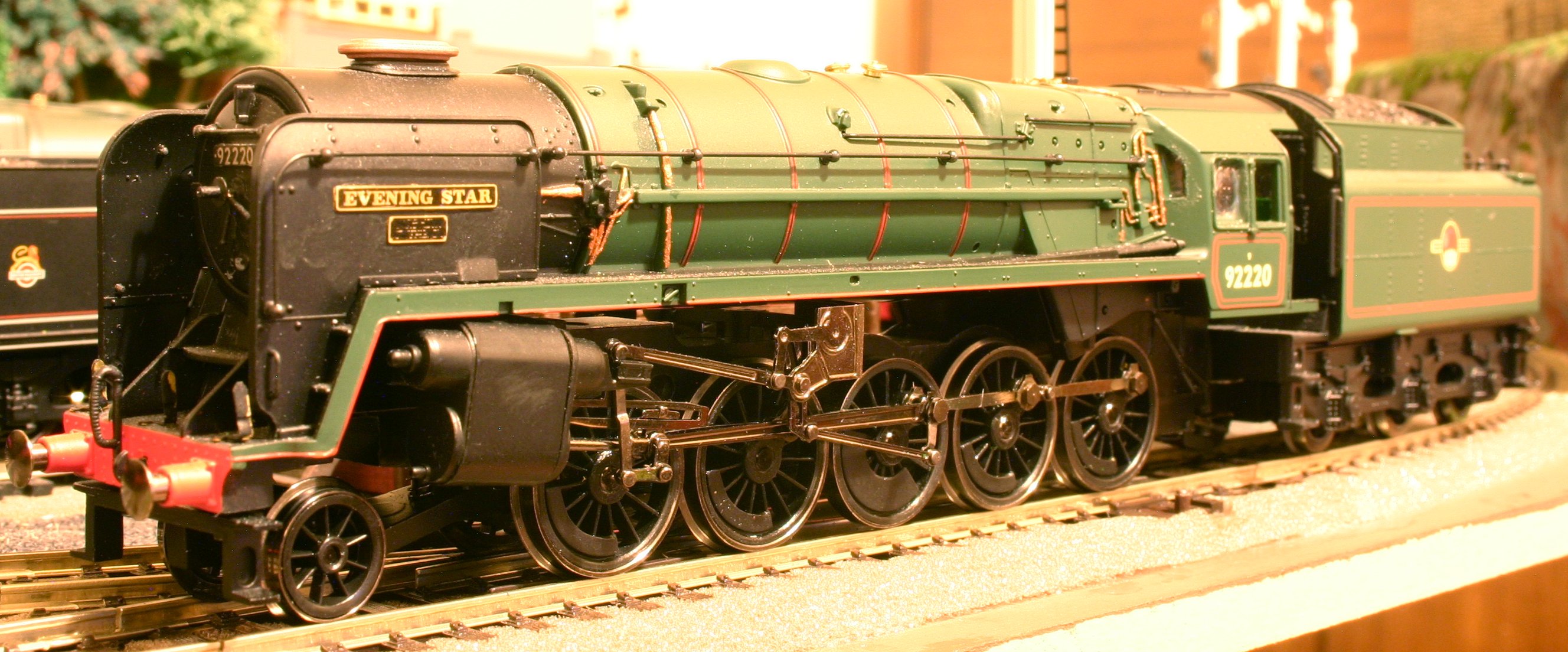 The youngest (prototype) I own is a model of the last locomotive constructed by British Railways – 92220 Evening Star.  Built in 1960, this locomotive is merely 52 years old.  This is not a “resident” but visits he line regularly from the display cabinet.