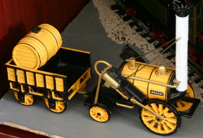 Over the next few days I shall be moving away from the yard to show some of the locomotives/scenes on display. Today we shall start with my Corgi Diecast model of the Rocket. It is almost the right 1:76 scale, but unfortunately can not sit on 00 scale track. It does look good however and sits next other models of the National Railway Museum.