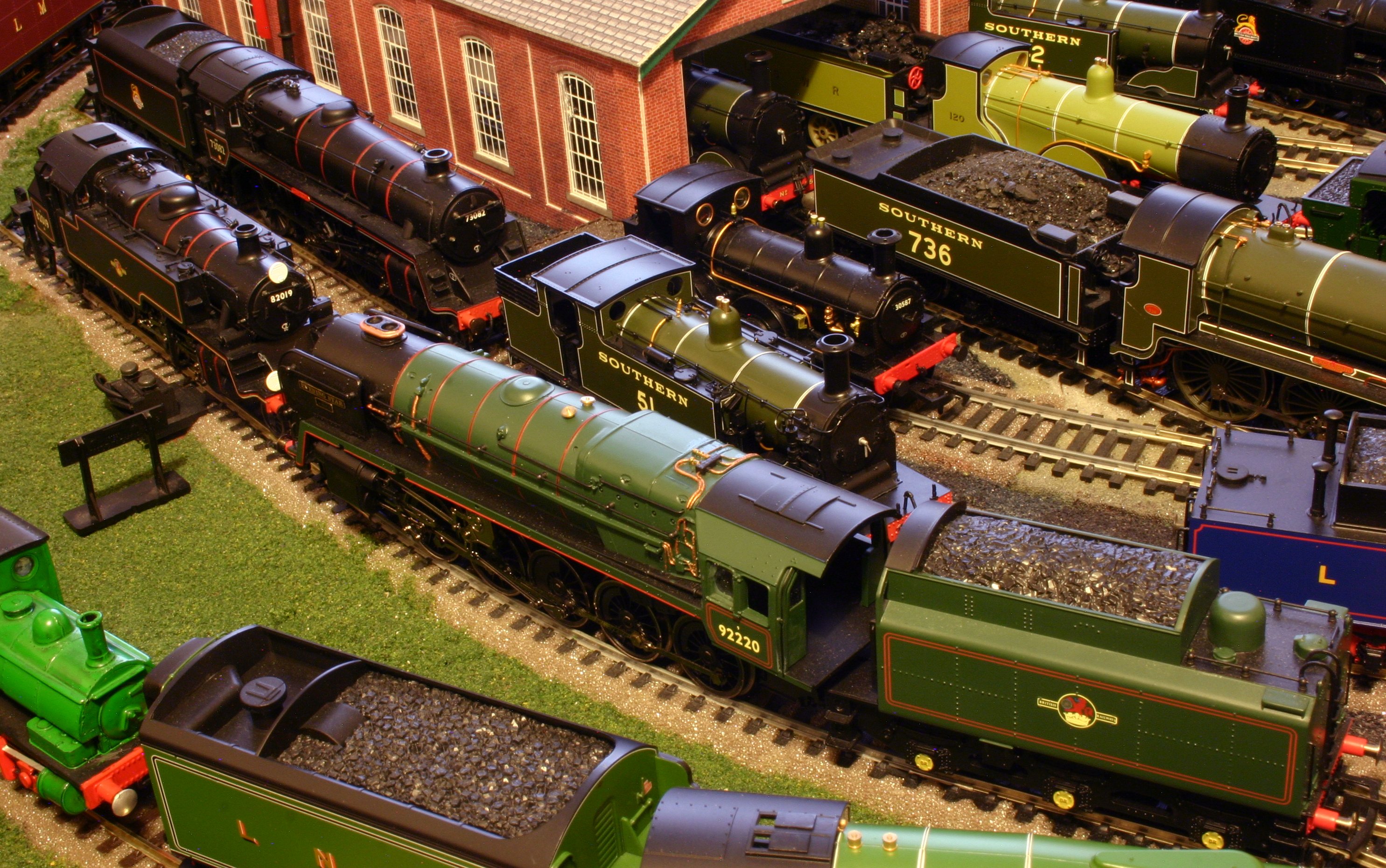 Turning our attention to the yard (where things become a little more muddled) are three BR Standard classes; 9F 92220 Evening Star, 3MT 82019 and 5MT 73082 Camelot. A couple of ex-LSWR tanks sit next to them..