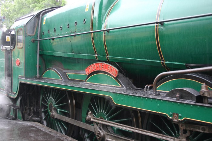 My final stop of the day was Alresford, to get a close look at the magnificent 850 Lord Nelson (below) and have a quick look in the line’s fantastic gift/model shop there. I try to make a point of buying what I can there so that the proceeds go to the railway. After taking a few pictures and watching Lord Nelson leave, I left to go home to put on some dry clothes and have a lovely big hot mug of tea!