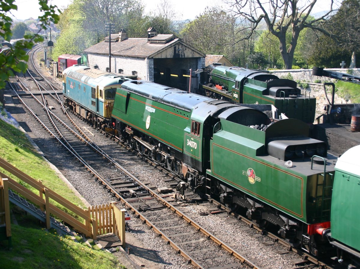 2011 – Swanage (Herston Works) – Unrebuilt Battle of Britain class – 34070 Manston & Rebuilt West Country class – 34028 Eddystone Published 10/10/2012 at 2656 × 1988 in The Swanage Railway ← Previous Next →