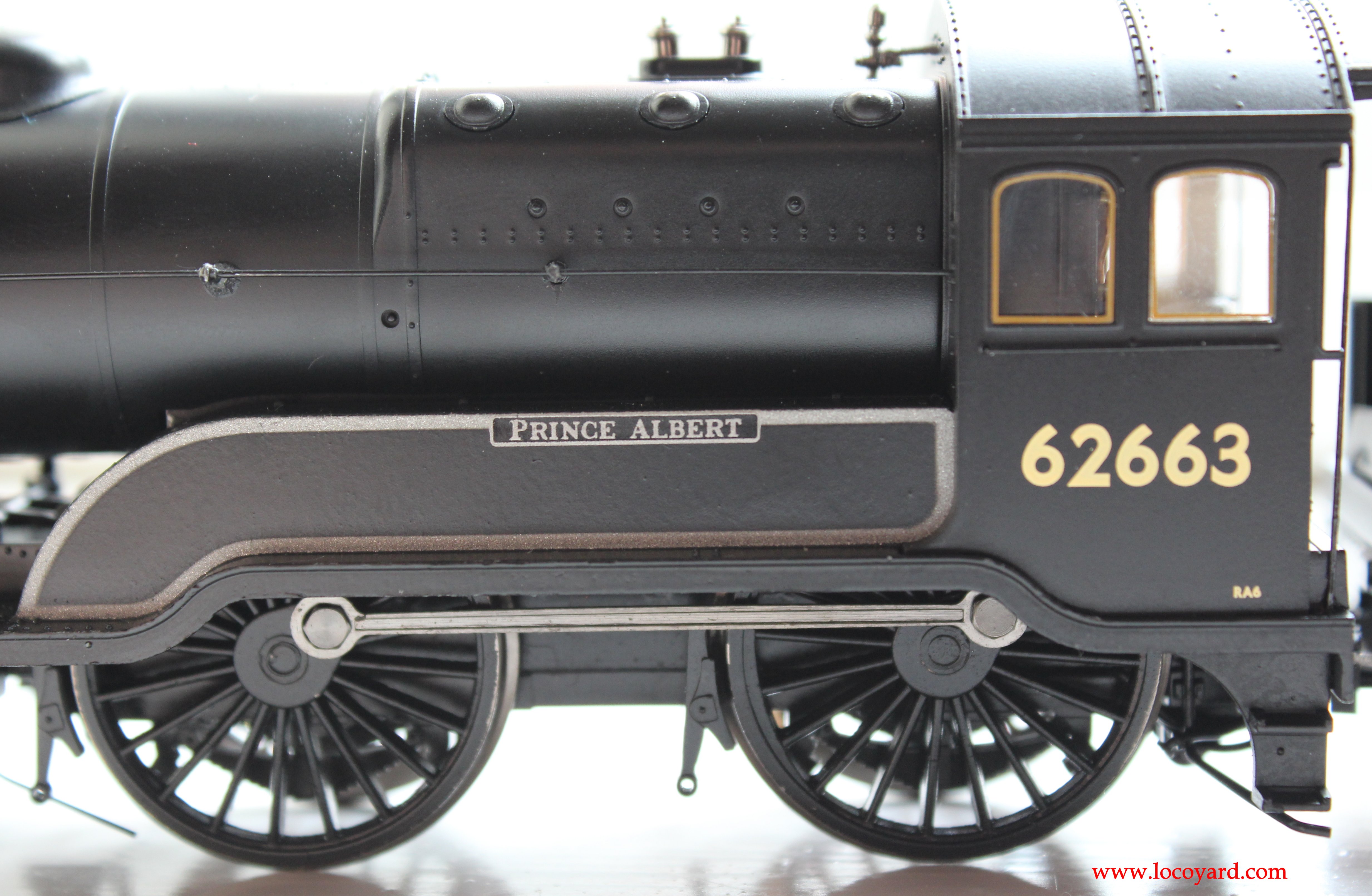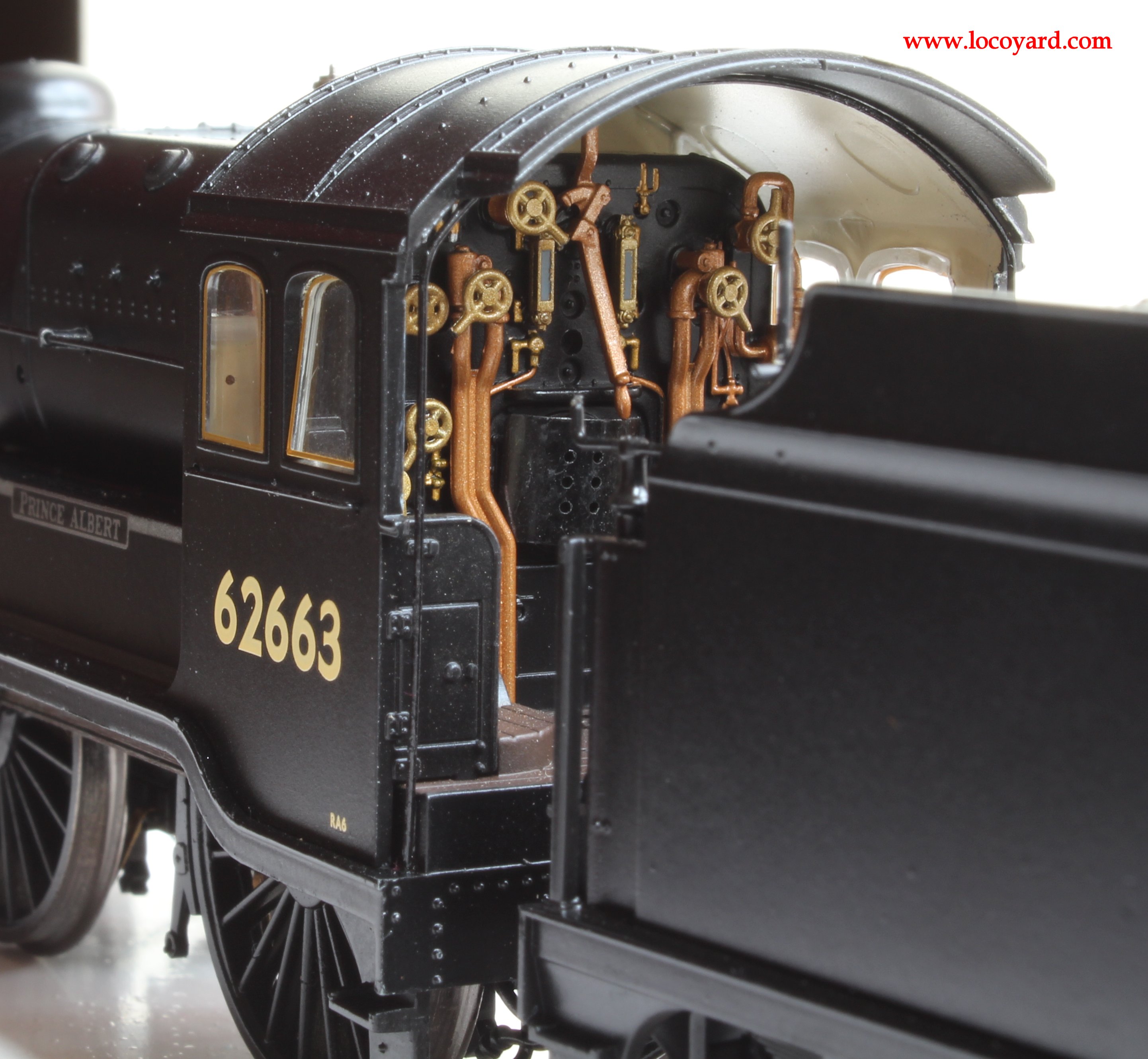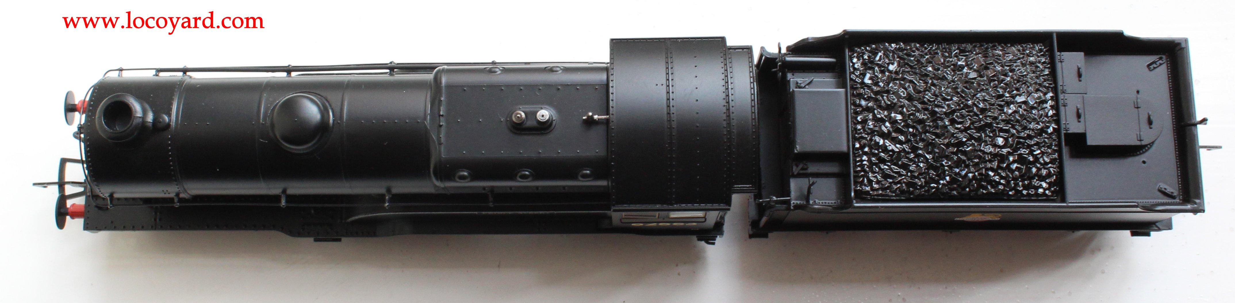 This model is one of the most exquisitely detailed 00 scale models on the market. The riveting, the detailed cab, a removable coal load, an opening smokebox door with detailed smokebox, lamp irons, beautiful wheels, chimney, dome and even a representation of inside motion all add up to making this a very detailed model.