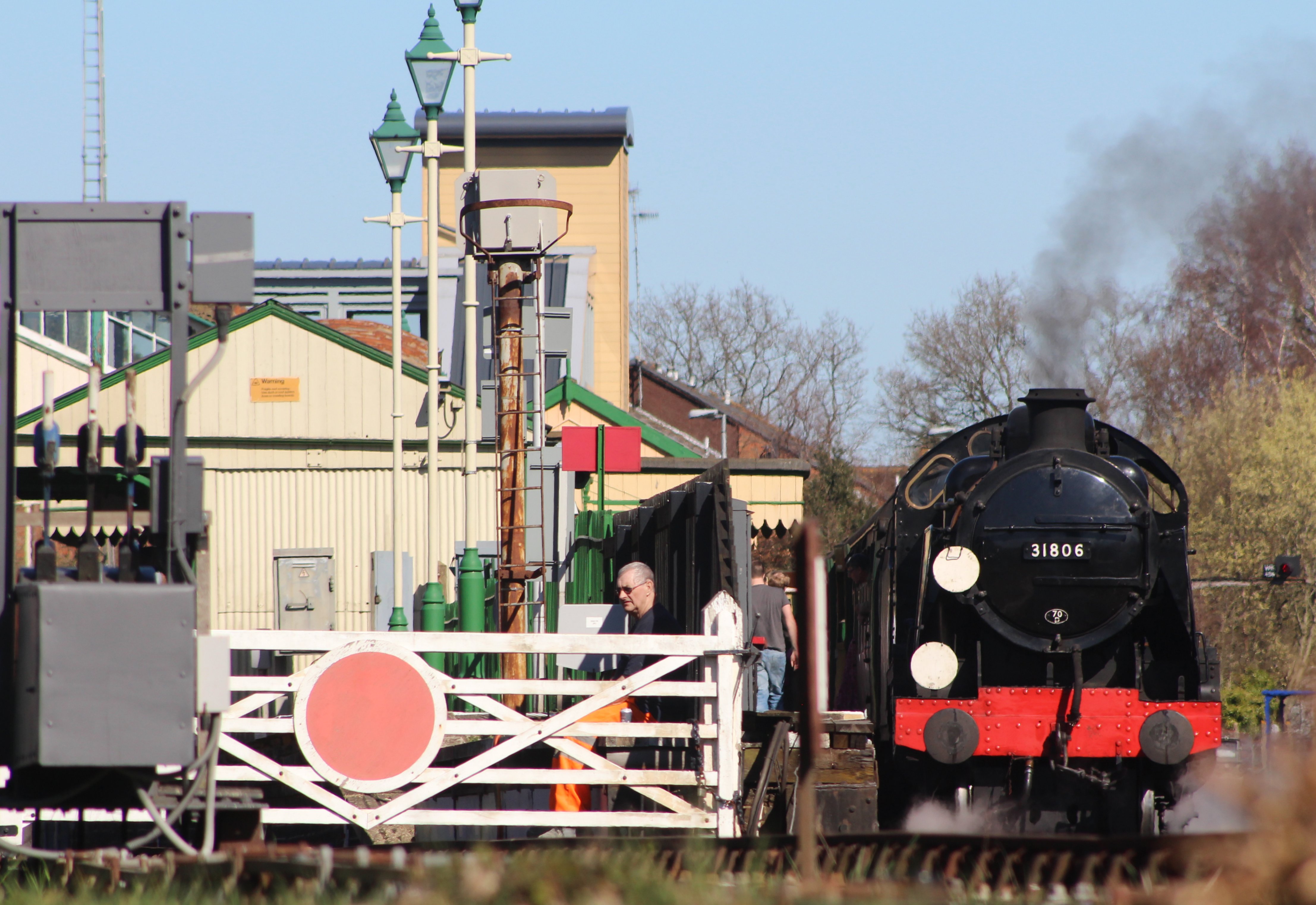 2014 - Watercress Railway - Alton - Ex-Southern Railway U class - 31806There is a short footpath that runs parallel to the line.  It’s a great spot to watch trains leave, but the high fence makes it difficult for photographers.  Fortunately, modern technology can help with this!  This was the first time I had used my SLR with a tilting live-view screen, which came in handy for the first shot and that below.2014 - Watercress Railway - Alton - Ex-Southern Railway U class - 31806As an aside, locations where preserved lines meet the mainline can make great spots to base a model railway’s location.  The contrast between new and old, as can be seen above with the South West Trains EMU next to the U class makes for plenty of contrast, which is food for thought!