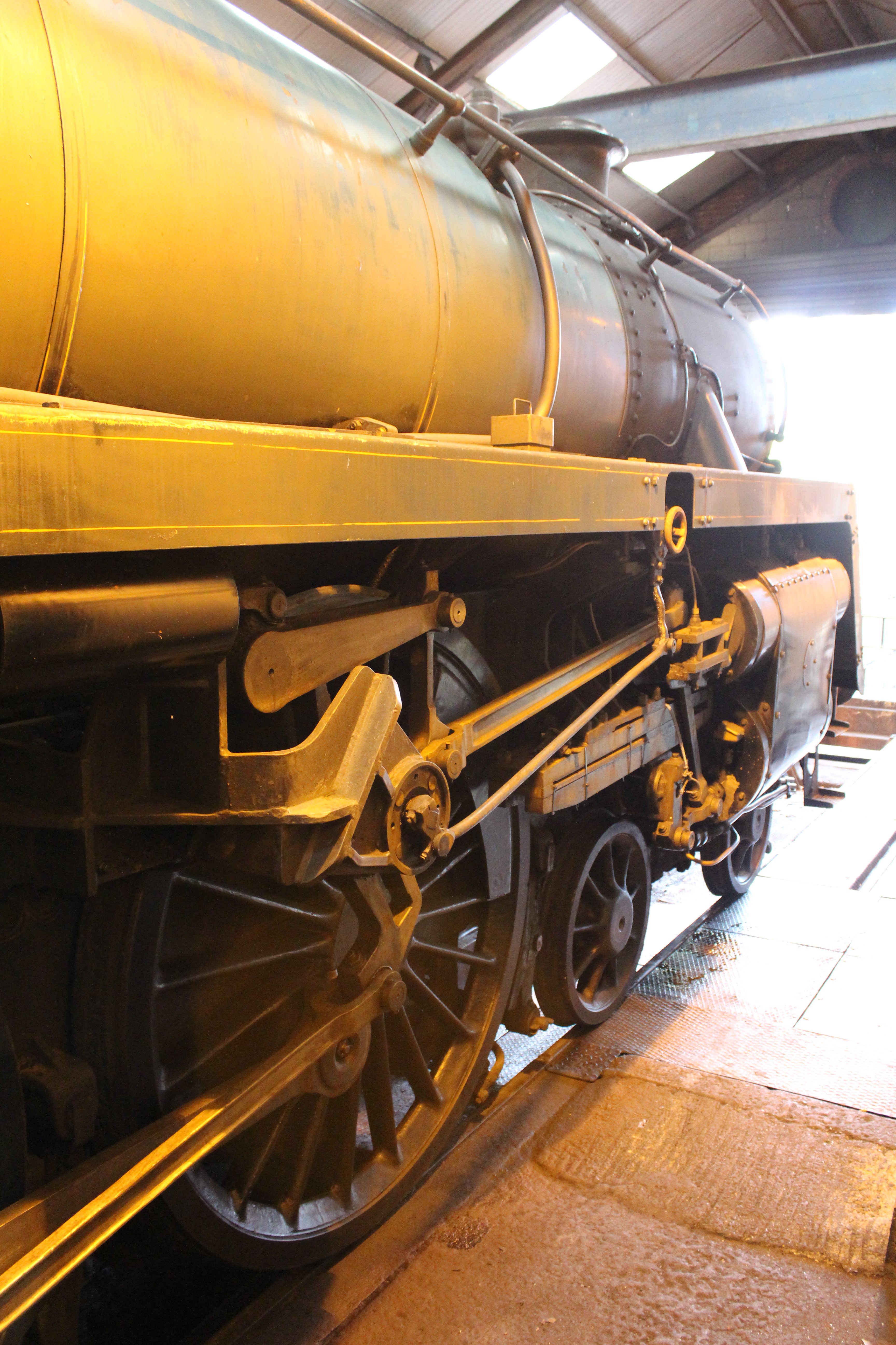 Another locomotive in the works was the National Collection’s Battle of Britain class 34051 Sir Winston Churchill (see below.) This locomotive is undergoing cosmetic restoration, for which there is an open appeal (please click here to see more and donate if you can.) One of the volunteers told us that remarkably the locomotive still had ash in the ash pan from when it last ran (in 1965!)