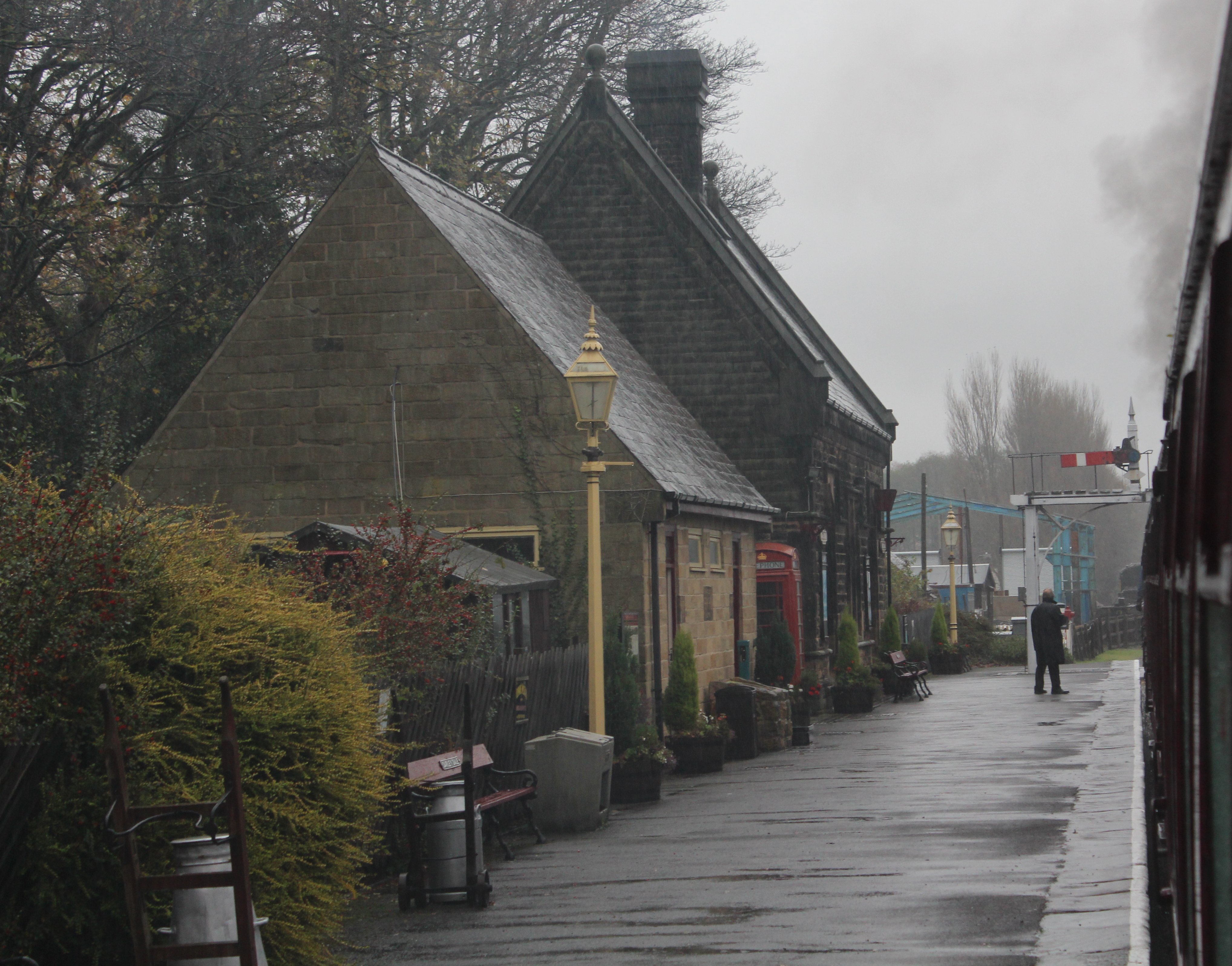 Peak Rail manages to keep steam hauled services running throughout November, which was very fortunate as Mrs Locoyard and I visited the Peak District. The railway runs between Rowsley South to Matlock where it connects with Network Rail, running via Darley Dale over a distance of around five miles. Although short the journey is very sweet, with beautiful views across to the south east of the National Park which we could just about make out through the inclement weather. Not only is it a scenic ride, but my wife and I were made to feel very welcome. It’s always nice when the ticket collector stops for a quick chat and takes an interest in where you are visiting. Little things like that go a long way in my book.