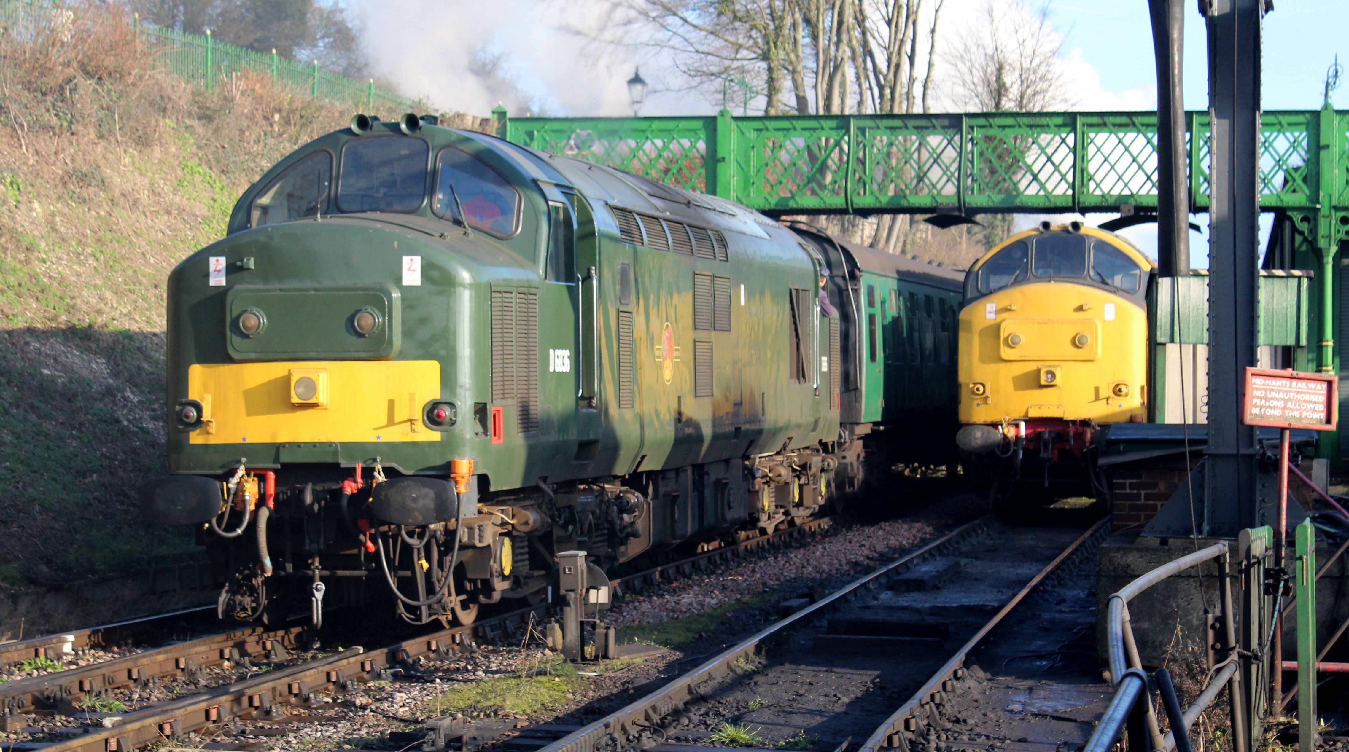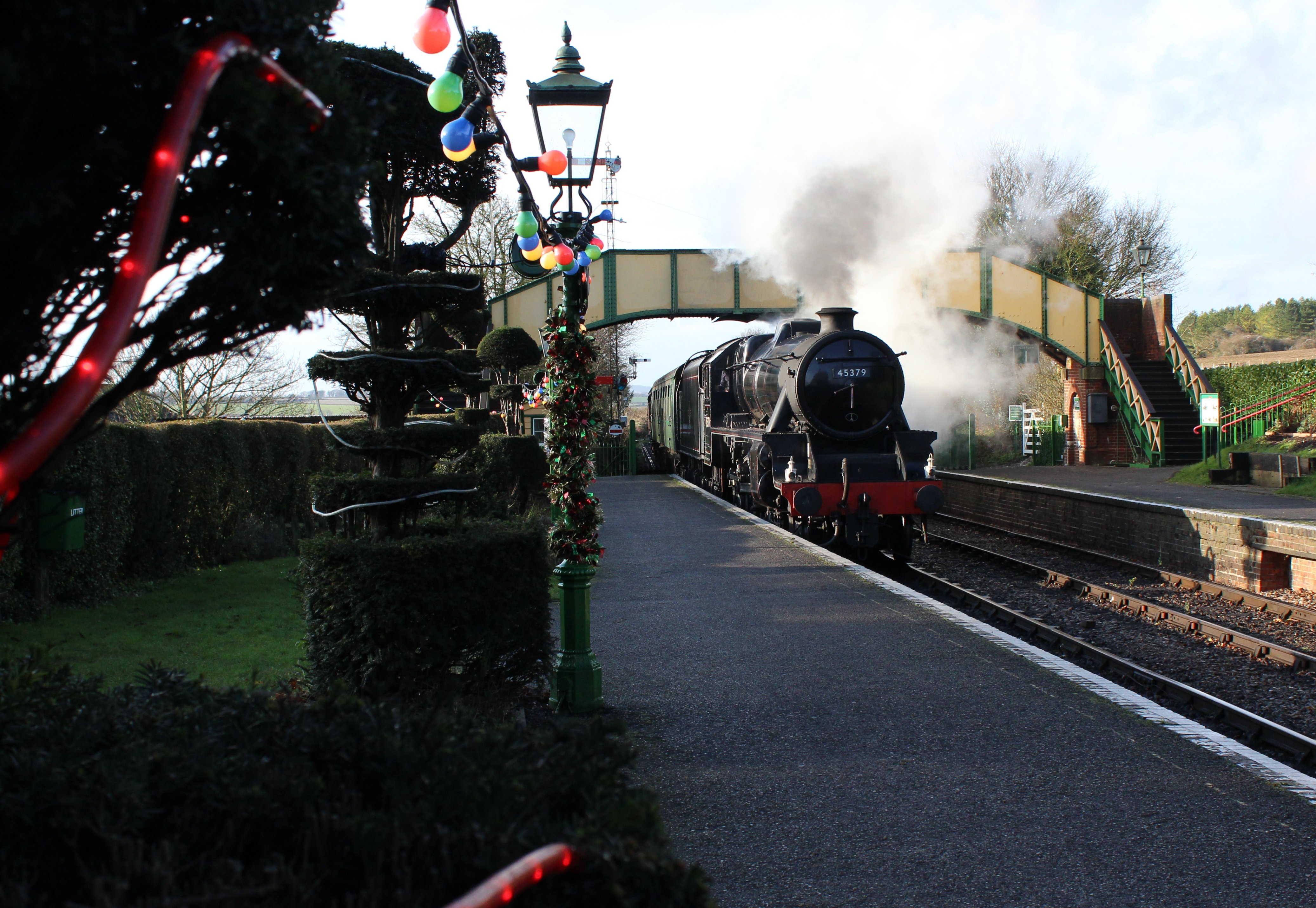Venturing around to the loco yard, I watched 45379 pull out of Ropley in a cloud of steam, the scene tinged a golden colour in the low winter sun.