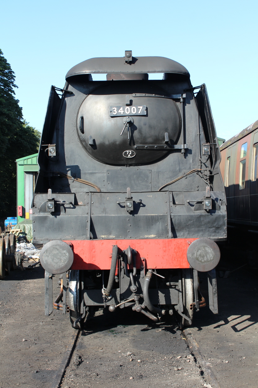 Watercress Line Ropley 10th July 2015 Unrebuilt West Country class 34007 Wadebridge smokebox door face Published 11/07/2015 at 833 × 1250 in Mid Hants update ← Previous